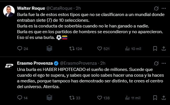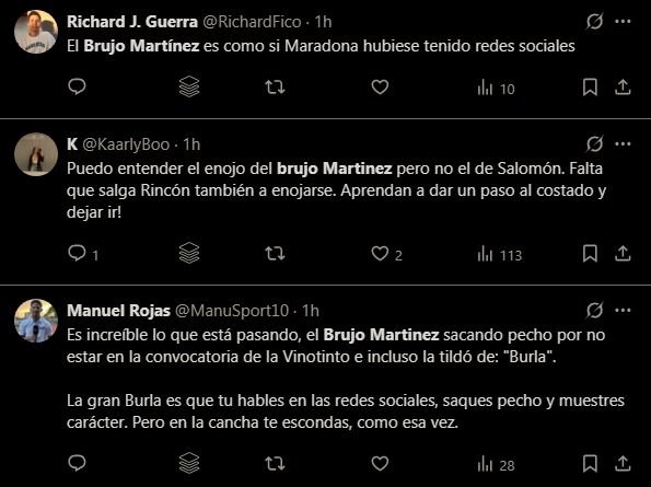 Las críticas en redes sociales no se hicieron esperar, especialmente hacia Martínez, a quien numerosos usuarios tildaron de “soberbio” y “poco profesional”. También recordaron su actitud durante las Eliminatorias al Mundial 2026, en las que la Vinotinto terminó fuera del repechaje tras ser goleada 3-6 por Colombia y no lograr los resultados esperados en partidos clave.